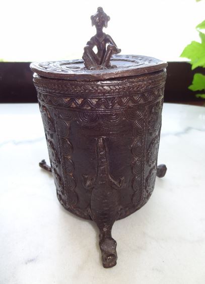 Rare pot à onguent en bronze de l’ethnie Dogon (Mali), avec patine exceptionnelle.